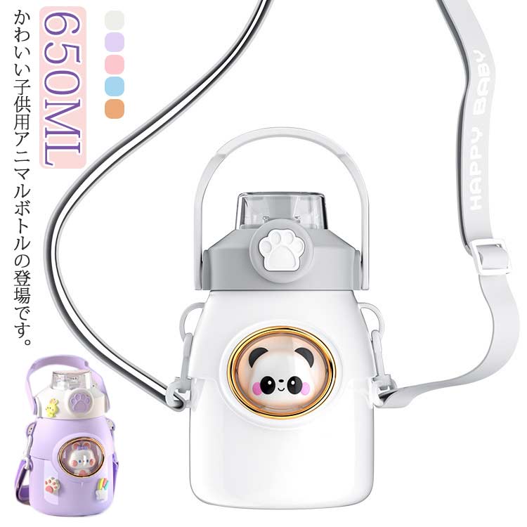 ワンタッチ 携帯便利 水筒 入園準備 幼児 女の子 保冷保温 ストロー 肩紐付き マグボトル 魔法瓶 可愛い 650ML フォックス 子供用 男の子 保育園 キッズ 幼稚園 ネコ ウサギ 大容 パンダ