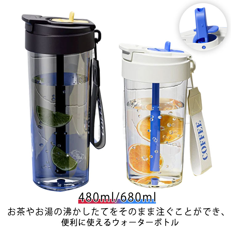 耐冷耐熱 大容量 クリアボトル 直飲み水筒 茶こし付き 680ml 2容量選べる 480ml 目盛り付き ウォーターボトル ボトル 洗いやすい 蓋つき オフィス 通勤 ワンタッチオー 通学