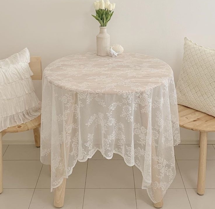 レース花柄テーブルクロス布ピクニックシート白ホワイトフリルフレア大きい可愛いおしゃれカフェインテリア雑貨韓国マット刺繍四角北欧透明インスタ映え背景写真レトロ