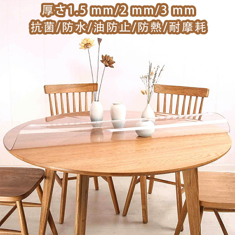 テーブルクロス 透明 つや消し 撥水加工 おしゃれ 厚1.5mmテーブルマット PVC 円形 正方形 食卓デスクマット 防水 撥油 耐熱 汚れ防止 家庭用 PVC製 デス 傷防止