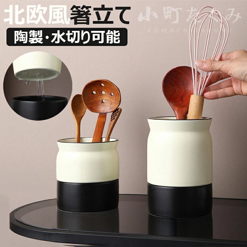 収納 菜箸 箸立て 水切り可能 フライ返し キッチンツールスタンド キッチン小物 キッチン キッチンツールキャニスター 陶器 カトラリー立て カトラリースタンド 保存容器 樽 北欧 おしゃれ 調理器具
