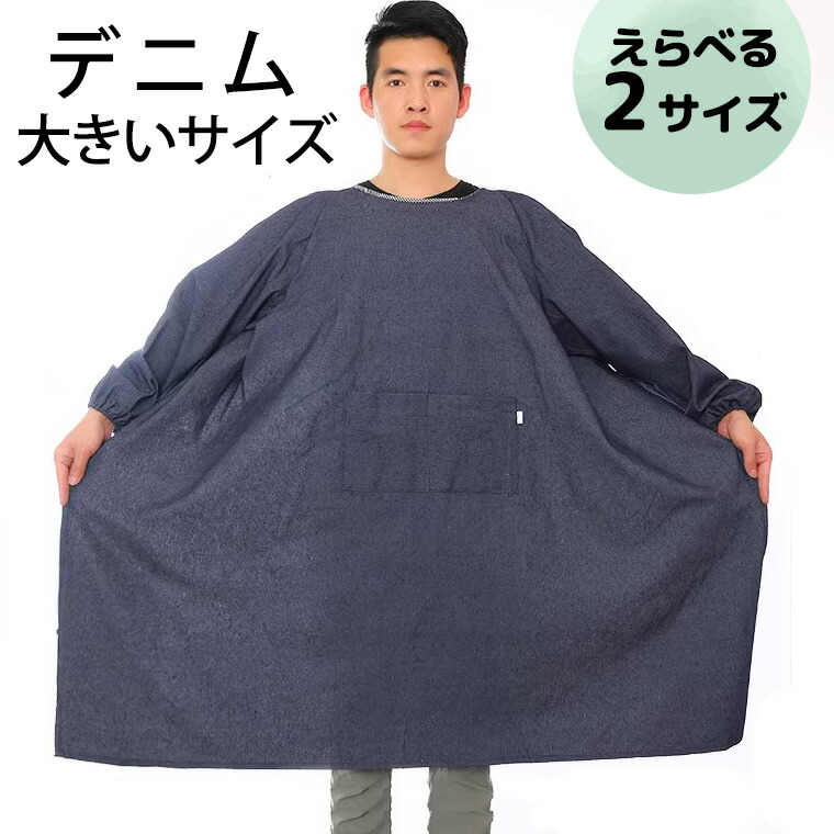 115の方まで デニム特大サイズ メンズエプロン メンズ 割烹着 汚れ防止加工 袖あり 長袖 黒 ブラック 防水 防油 汚れ防止 大きいサイズ 男性用 男性 袖口ゴム