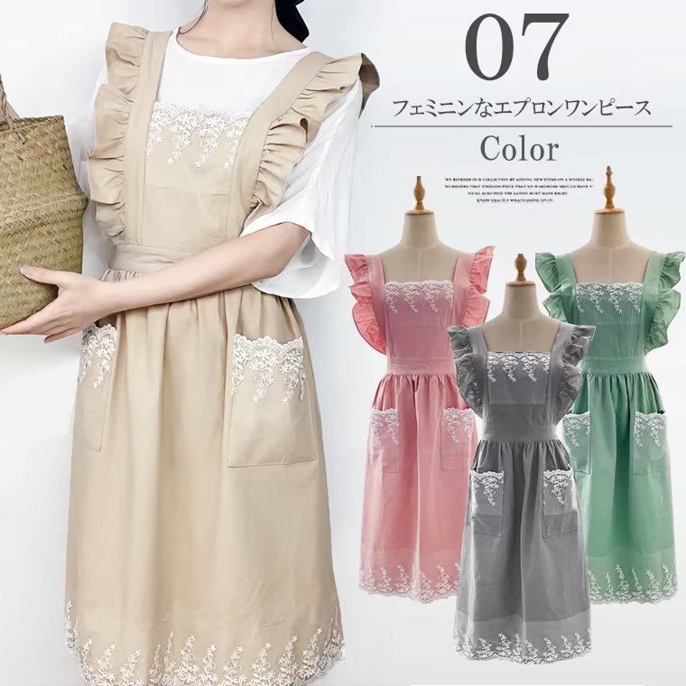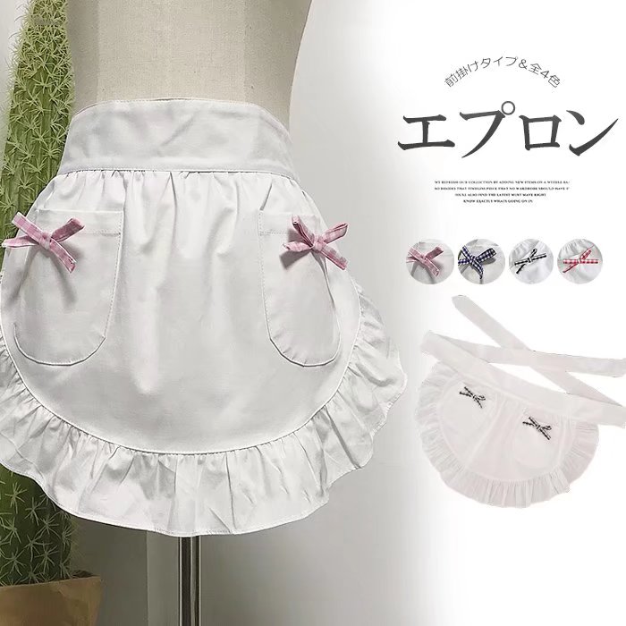 女性らしさを演出 全4色 フリル 前掛け サロンエプロン ひらひら メイド風 ポケット 演劇 イベント カフェエプロン ガーデニング ディナーパーティー 料理教室