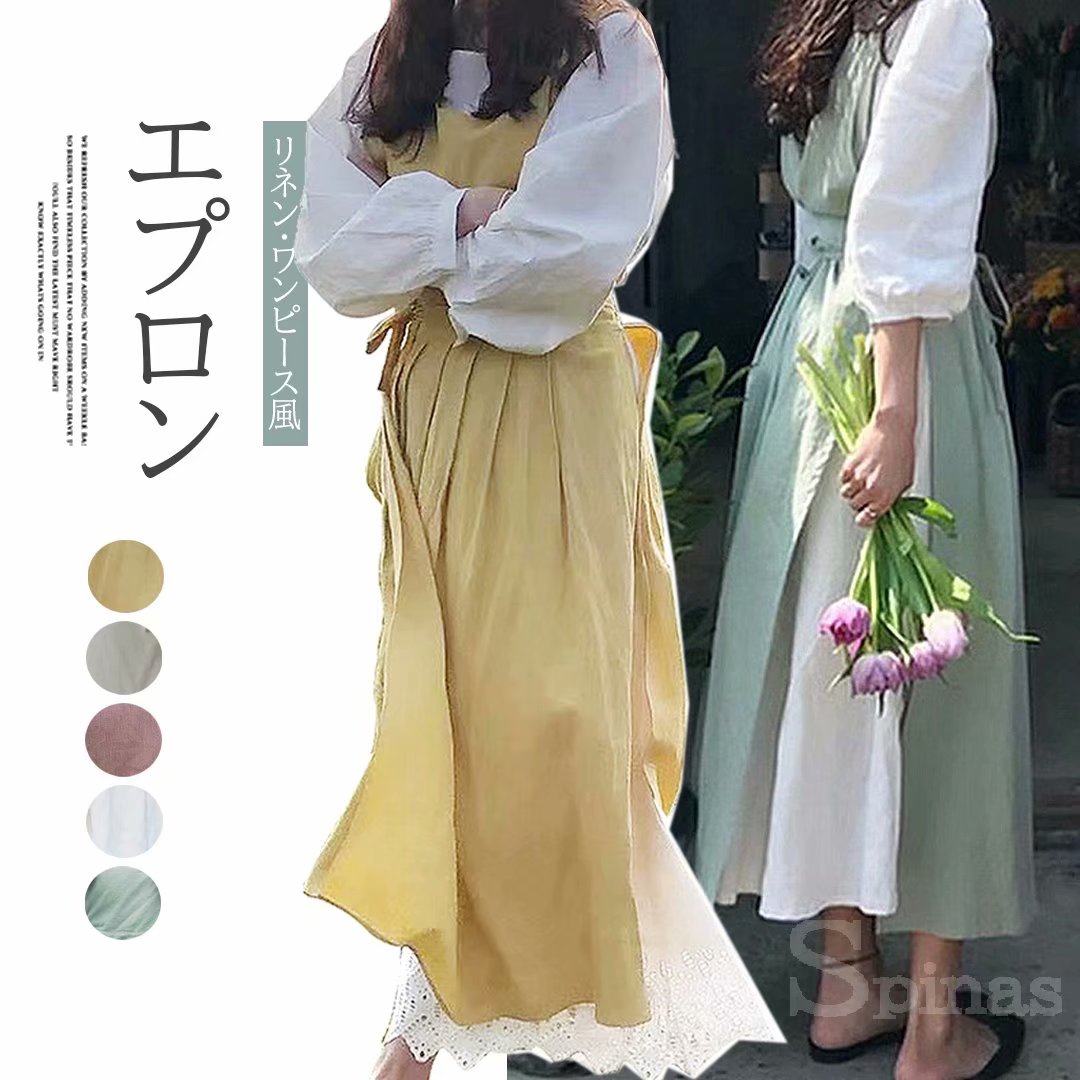ナチュラルな雰囲気に リネン 麻綿 北欧風 ワンピース エプロン 新婚さんエプロン 花屋さん ロング丈 カフェエプロン