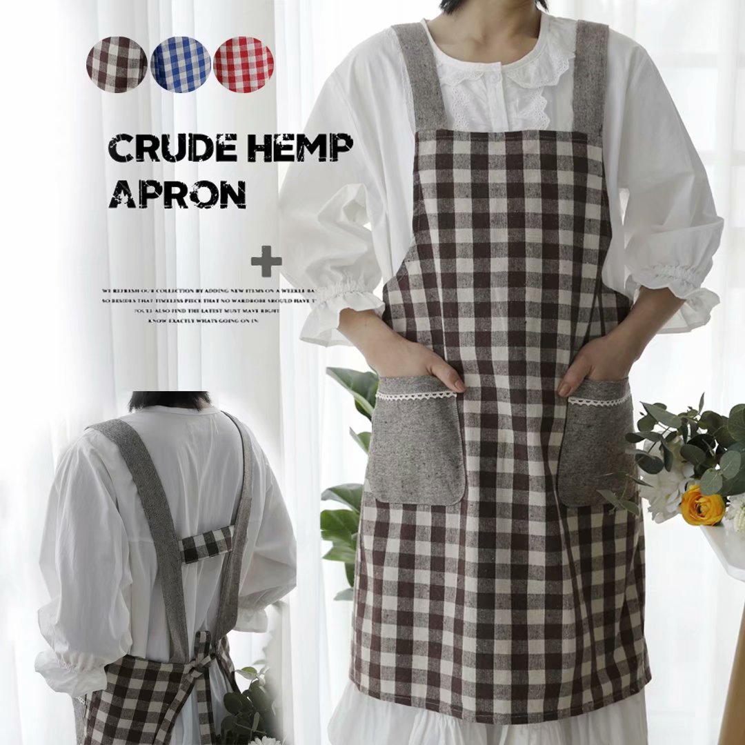 女性らしいスタイル 北欧風 総柄 首掛け エプロン パン屋エプロン 格子柄 モノトーン ワークエプロン H型 クッキング カフェ サロンエプロン チェック