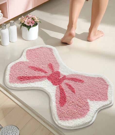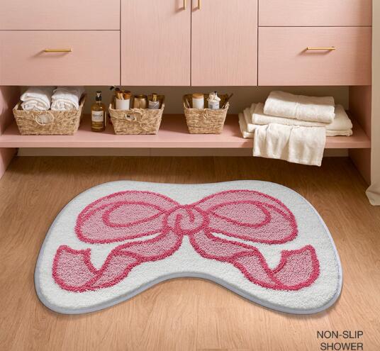 40cm×60cm50cm×80cm リボンバスマット足ふきマットおしゃれ韓国雑貨インテリアマット速乾お風呂北欧絨毯かわいい洗える室内タオル地柔らかい滑り止め吸水シンプル