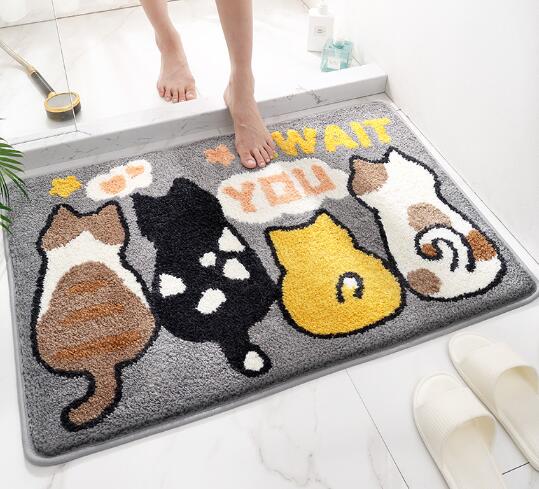 50×80ネコバスマット足ふきマットおしゃれ韓国雑貨インテリアマット速乾お風呂北欧絨毯かわいい洗える室内タオル地柔らかい滑り止め吸水シンプル