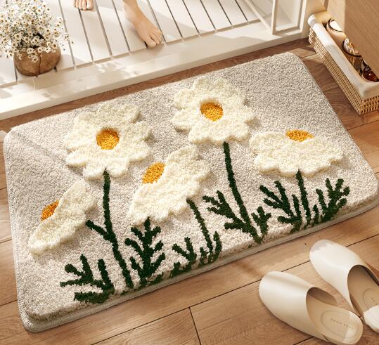 40cm×60cmフラワーバスマット足ふきマットおしゃれ韓国雑貨インテリアマット速乾お風呂北欧絨毯かわいい洗える室内タオル地柔らかい滑り止め吸水シンプル