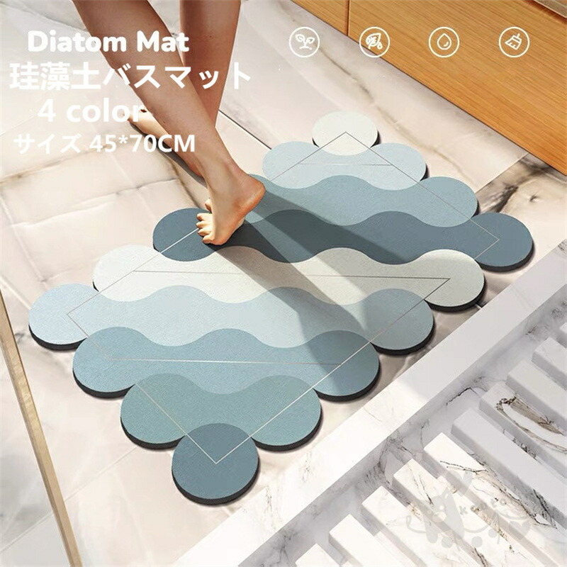 珪藻土バスマット 可愛い 珪藻土マット 玄関マット 柔らかい 速乾 瞬間吸水 抗菌 防臭 調湿 快適 滑り止め 洗面所マット 50*80CM 収納に便利