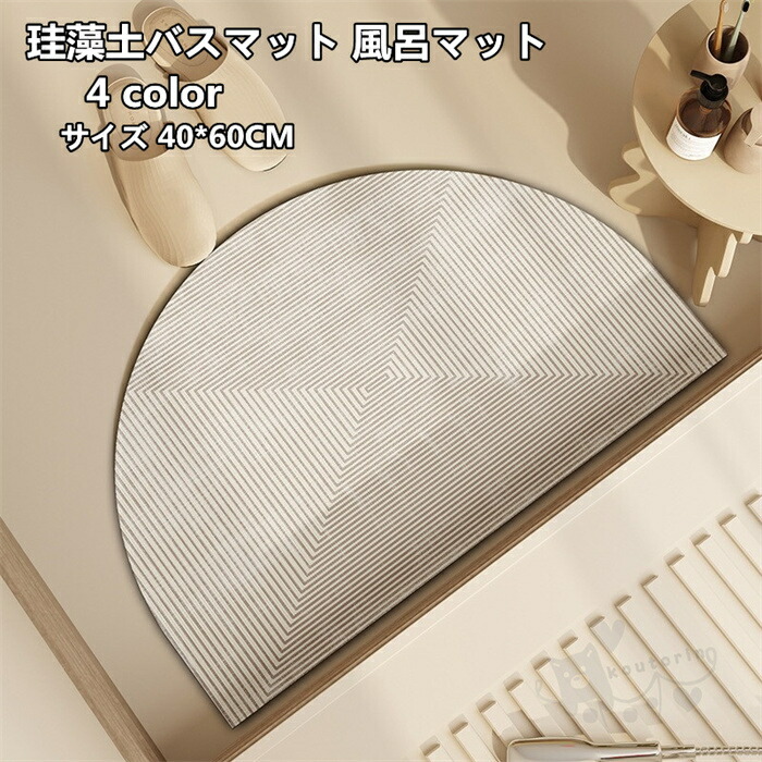 珪藻土バスマット 半円形 風呂マット 足ふきマット 速乾 調湿 瞬間吸水 抗菌 滑り止め 珪藻土マット 40*60CM 柔らかい