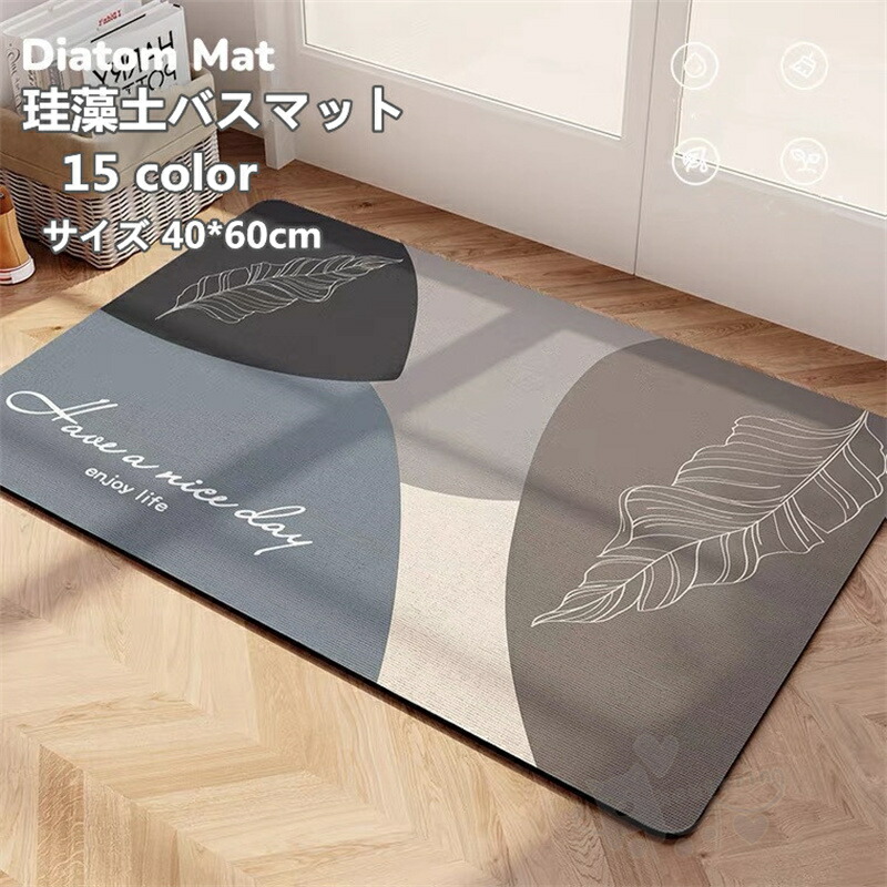バスマット 珪藻土バスマット 風呂マット 足ふきマット 速乾 調湿 防臭 吸水性 お手入れ簡単 抗菌 滑り止め 浴室 洗面所マット40*60CM 珪藻土