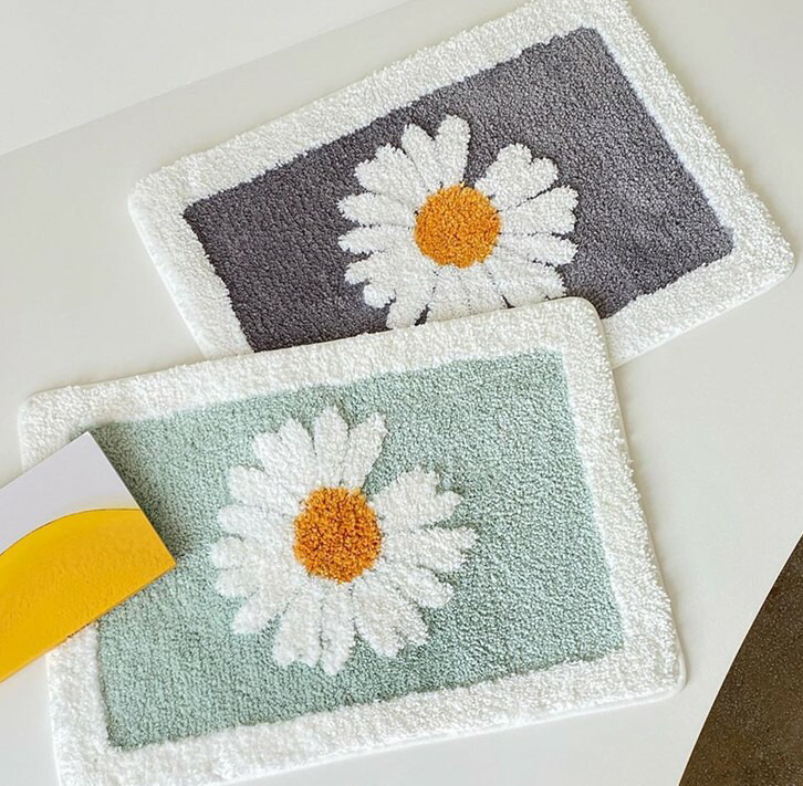 45×65バスマット足ふきマット花柄おしゃれ韓国雑貨インテリアマットお風呂グレーグリーンホワイト白北欧玄関マット絨毯かわいい洗える室内タオル地柔らかい滑り止めフラワー部屋ラグシンプル