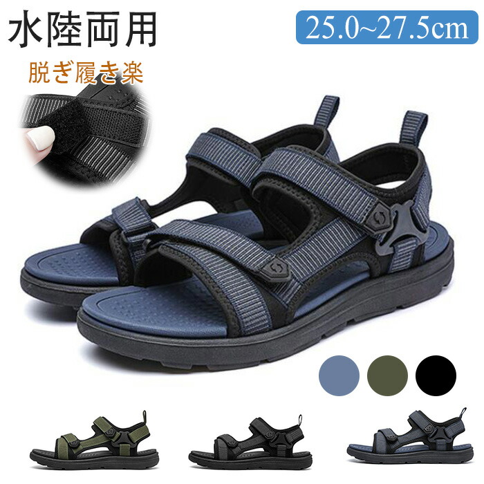 ストラップサンダル メンズサンダル スポーツサンダル さんだる アウトド 水陸両用 マジックテープ 歩きやすい スポーツサンダル 黒 ブラック サンダル