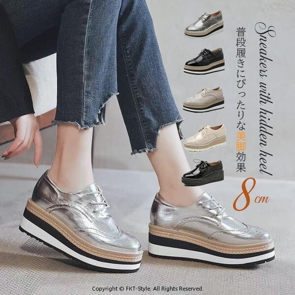 ローファー 美脚 普段履き 厚底 女の子 インヒールスニーカー レディース 8cm ヒールスニーカー 厚底ローファー