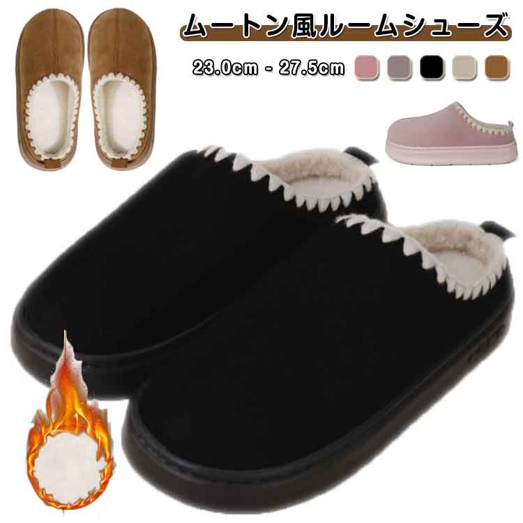 男女兼用 スリッポン 秋冬 厚底 もこもこ ムートン スリッパ ルームシューズ 室内履き オフィス 来客用 滑り止め ふわふわ 防寒 暖かい グレー 黒 カーキ ブラウン ピンク