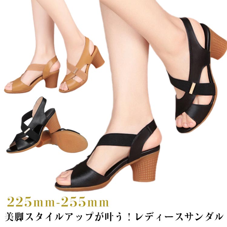 内寸225~255 ストラップサンダル 履きやすい 太ヒール 安定感 大人女性