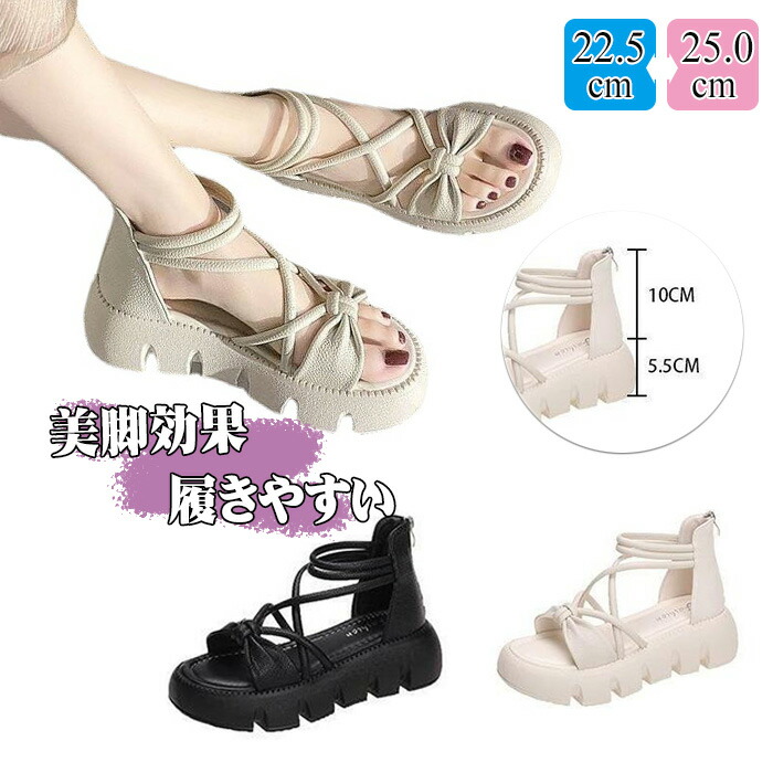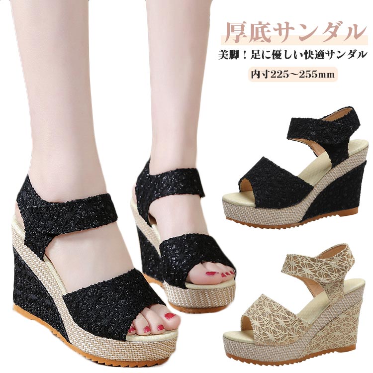 内寸225~255 ウェッジソール 厚底 サンダル 脚長効果 美脚 履きやすい