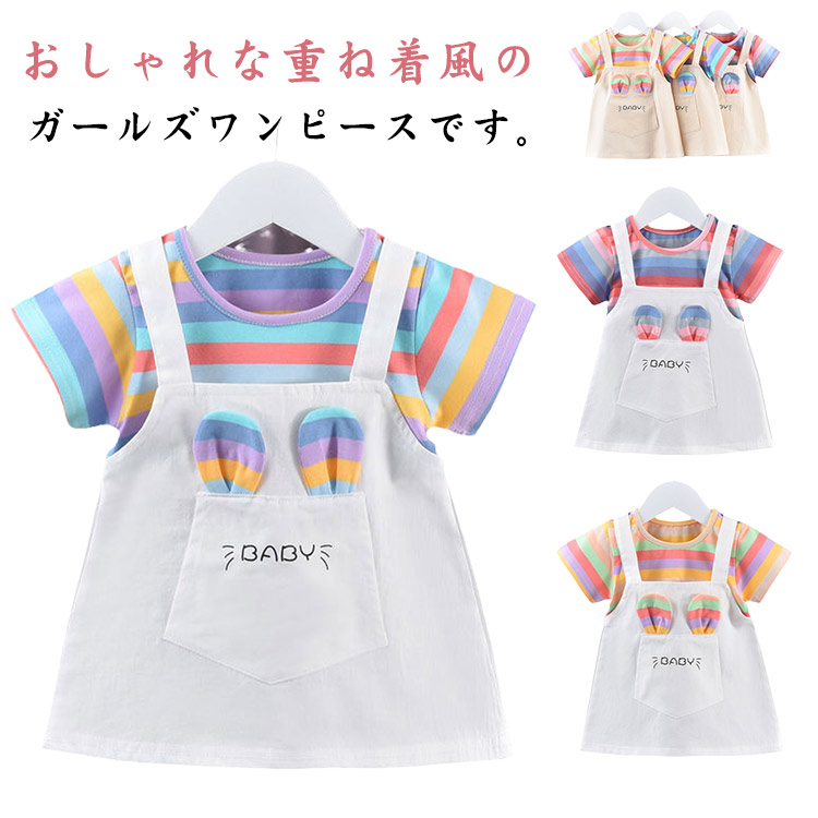 キッズ レイヤード風 女の子 春 半袖ワンピース 子供 夏 ワンピース