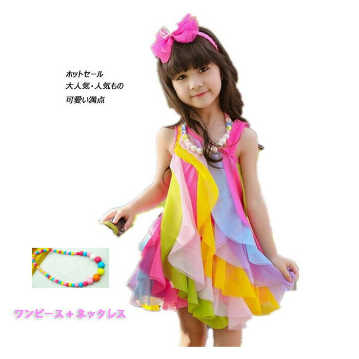 韓国こども服 大人っぽい子供服ダンス衣装 夏着 袖なしワンピース スカート 可愛いスタイル 女の子 ビーチスカート 子供 レインボー ワンピース女の子ダンス衣装 ドレス 二次会 発表会 ノースリーブ