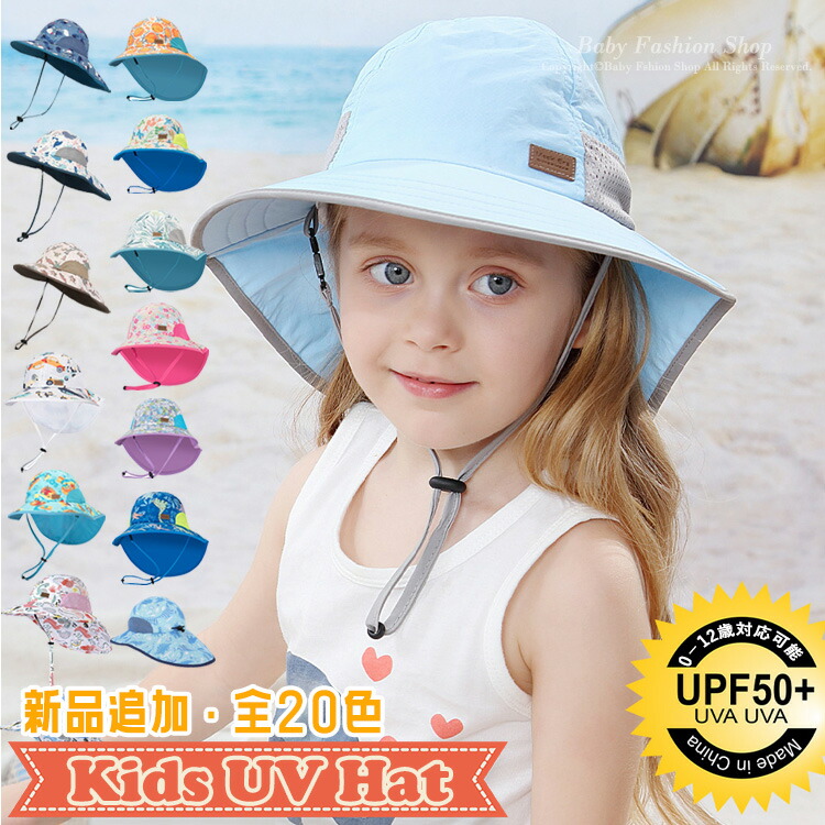 UPF50+ 帽子 キッズ 日よけ ビーチハット ベビー 男の子 女の子 44-56cm サイズ調整可能 通気性 水遊び 水陸両用 ストラップ 紫外線カット バイザーハット サンハッ UVカット