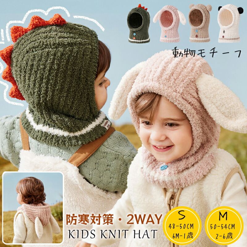 フードウォーマー 帽子 ベビー 秋冬 耳付き 女の子 男の子 もこもこ ボア 可愛い うさぎ クマ 恐竜 パンダ ニット帽 キッズ帽子 ウサ耳 キッズ キャップ ふわふわ かわいい 防寒 S 暖かい