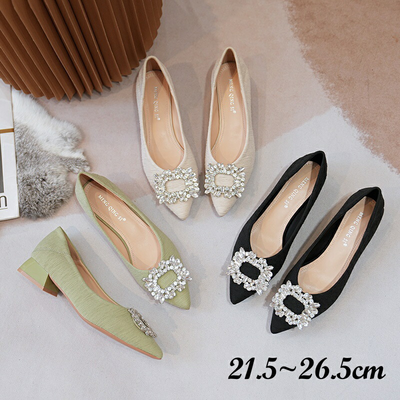 パンプス 3色 ビジュー 小さいサイズ 大きいサイズ 21.5~26.5cm レディースシューズ レディース靴 痛くない 3cmヒール 歩きやすい 脱げない ビジネス 入園式 入学式 オフィ 通勤通学