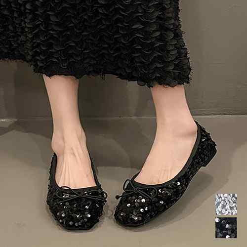 レディース スパンコール リボン飾り 美脚 フェミニン 大人 きれいめ エレガント おしゃれ ローヒールパンプス 歩きやすいシューズ 韓国ファッション 結婚式入園式卒業式