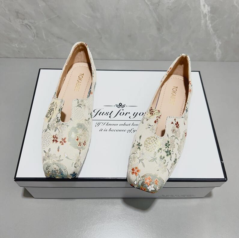 パンプス 民族風 大きいサイズ 痛くない オフィス ローヒール ぺたんこ バレエシューズ フラットパンプス スクエア 走れる ぺたんこ フラットシューズ