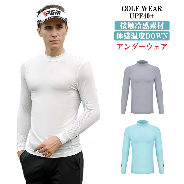 インナー メンズ ゴルフ ゴルフシャツ 速乾 アンダーシャツ ひんやり 冷感 接触冷感素材 Tシャツ インナーシャツ 吸汗 ハイネック UVカット 長袖 ス ゴルフウェア