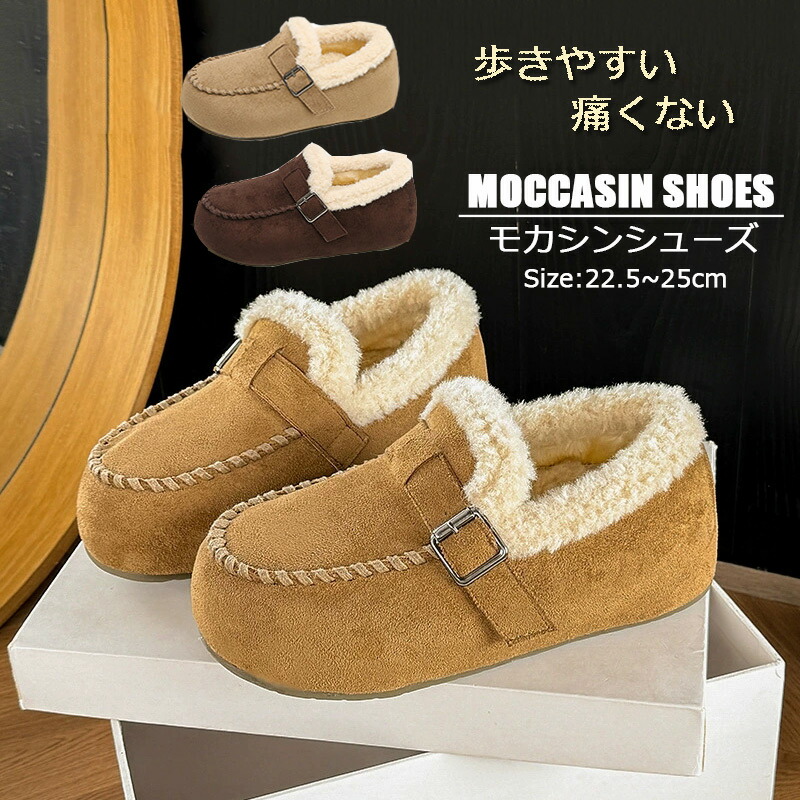 モカシン ムートンシューズ シューズ パンプス 靴 冬 レディース ボア モカシンシューズ 厚底 ムートン ブーツ ぺたんこ 内ボア フラットシューズ 防寒 痛くない あったか もこもこ ムー ファー