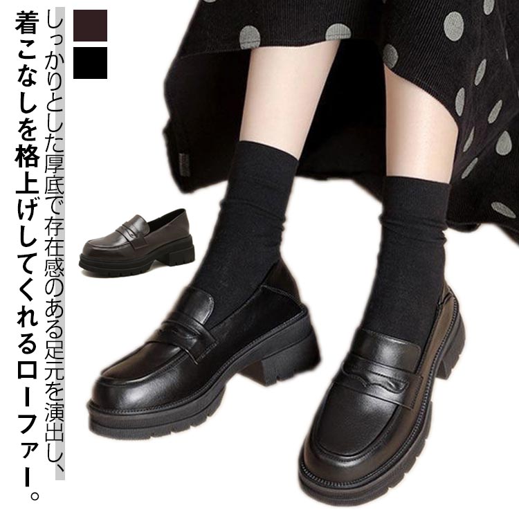 ローファー レディース 厚底 パンプス 靴 シューズ ラウンドトゥ 太ヒール 靴 学生