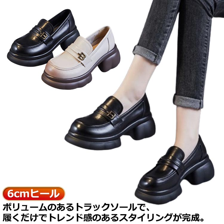 学生 厚底 ローファー レディース パンプス シューズ 6ヒール 美脚 合成皮革 大人