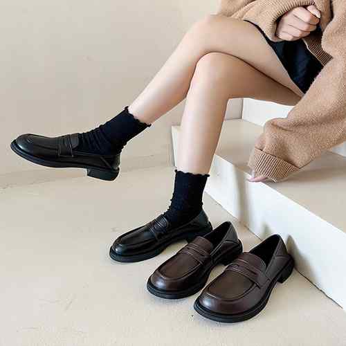 レザー調 可愛い 美脚 走れるパンプス 通勤通学 疲れにくい 歩きやすい おしゃれ 快適 オルチャン クラシック ローファーパンプス 学院風シューズ 太ヒールシューズ おじ靴