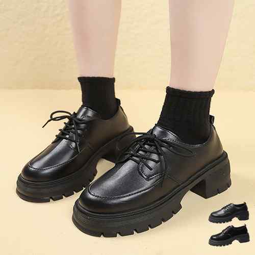 チャンキーヒール レザー調 美脚くつ マニッシュ ボリュームソール クラシック 疲れない おしゃれ 通勤通学 メイド靴 お嬢様 韓国ファッション ドレスシューズ