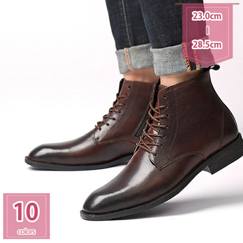 ビジネスシューズ 本革 ショートブーツ メンズ ブーツ 革靴 紳士靴 チャッカンブーツ サイドジッパー ハイカット ブーツ レースアップ 通気性 撥水加工 フォーマル パーティー 防滑