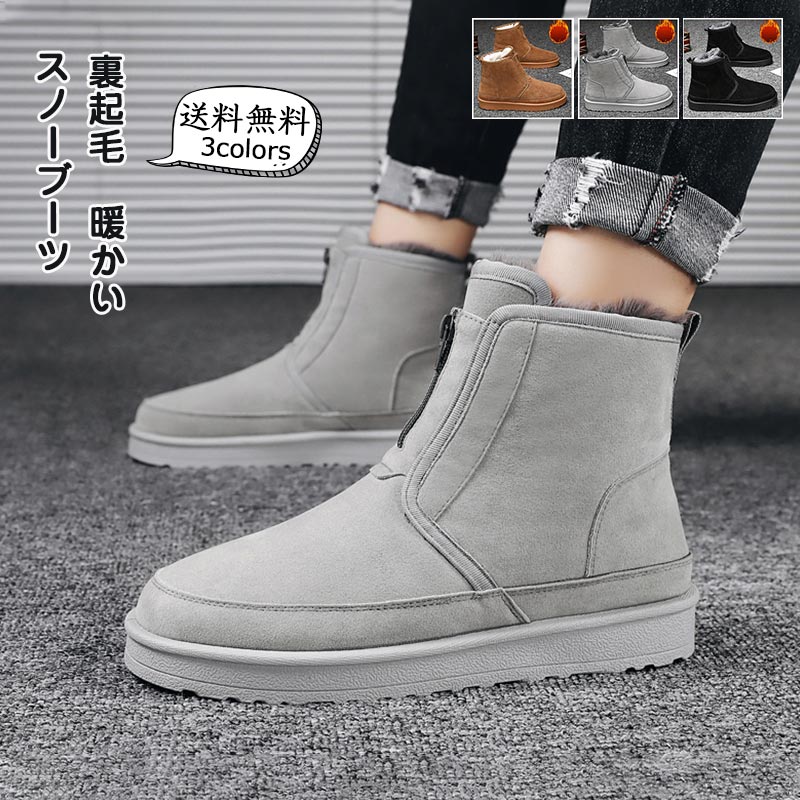 おし 秋冬 履きやすい 歩きやすい 暖かい 防滑 防寒 保温 カジュアル 靴 シューズ 裏起毛 ジップ式 ショートブーツ メンズ 厚手