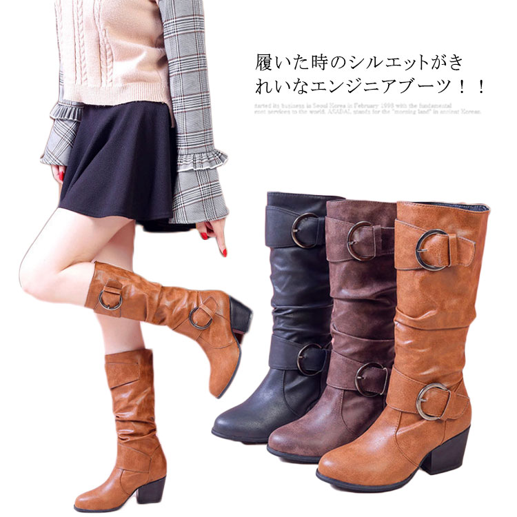エンジニアブーツ ロングブーツ ローヒール 太ヒール