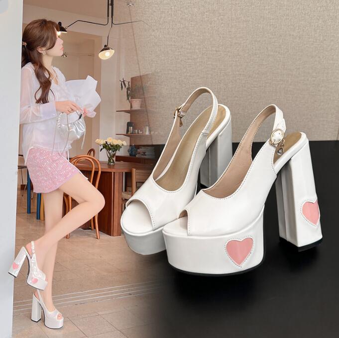 厚底サンダル キャバサンダル ロリータ風 レディース ヒール ストラップ付き ハット柄 美脚 美脚効果 歩きやすい ヒール サンダル 厚底 疲れ ない
