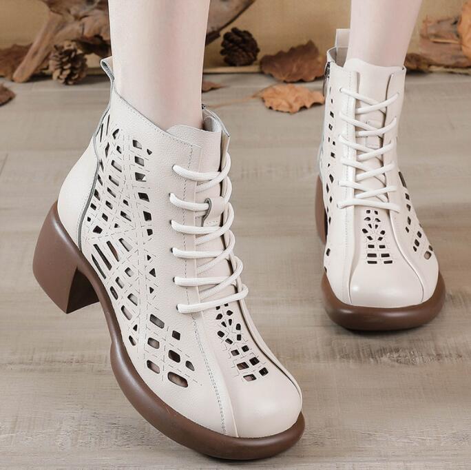 サマーブーツブーツサンダル 編み上げシューズショートブーツローヒールサンダルハイヒール夏シースルー7センチ 9.5センチヒール透かしレディース靴
