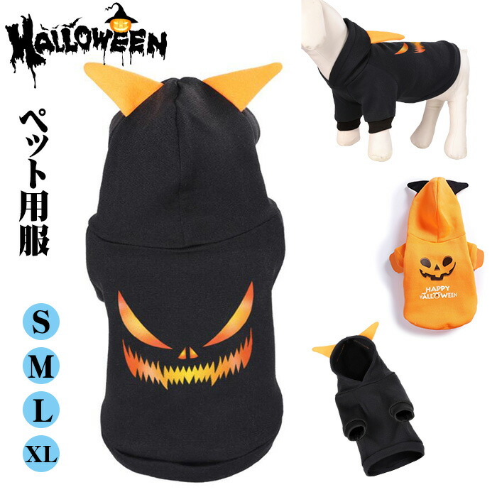 ペット用ハロウィンコスチューム ハロウィン仮装 カボチャ 幽霊の衣装 ペット服 黒パーカー