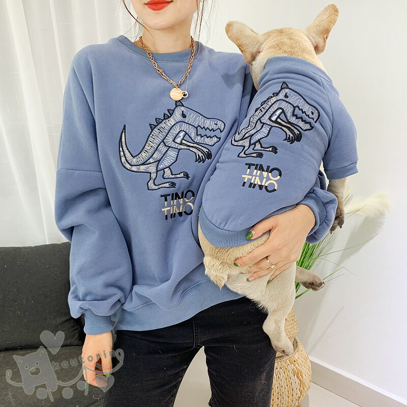 ペット用品 親子お揃い 2点セット パーカー 犬の服 犬用 犬猫とオーナーが ペアルック カイジュウ柄 中型犬 犬服親子 ドッグウェア パーカー春夏小型犬