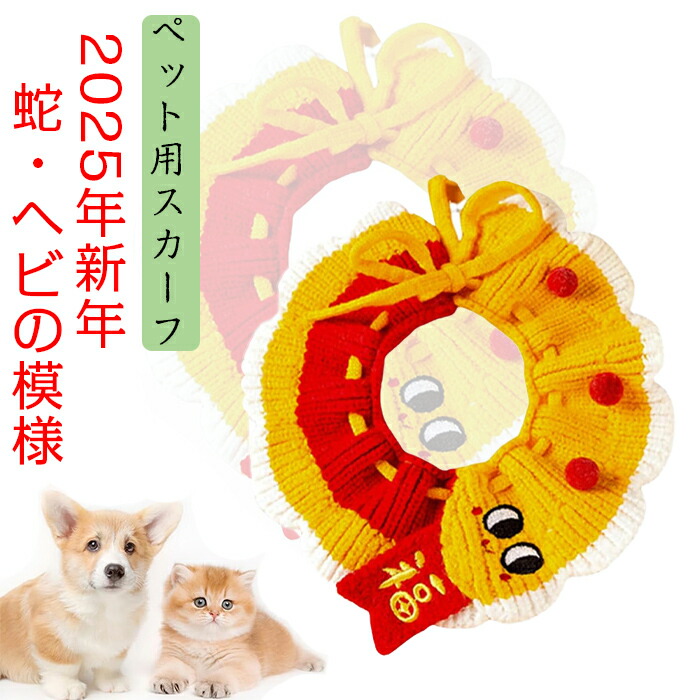 ペット用スカーフ 猫犬首輪 ペット用唾液タオル 猫犬 巳年 2025年 新年 蛇 ネックスカーフ 新年飾り付け 元旦お祝い 写真撮影