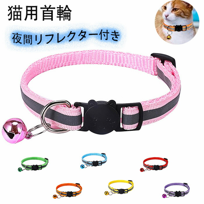 猫首輪 マルチカラー 夜間リフレクター付き セーフティバックル鈴付き夜間や暗い場所でも安心 フィット感抜群 可愛い首飾り ピンクブルー