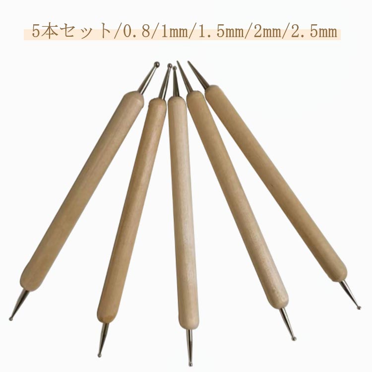 ネイルドットペン ジェル ネイルパーツ 木製 ドット ネイルツール ネイルチップ ジェルネイル 全5種類 ネイル ネイルアートペン ネイルチップ製作 ネイ ネイルアート