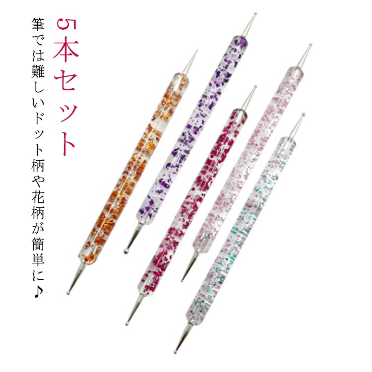 ネイル ドットペン ネイルドットペン 5本セット 全5色 5本 水玉 ネイルツール ドット ジェル ネイルパーツ ネイルアート ネイルアートペン ジェルネイル