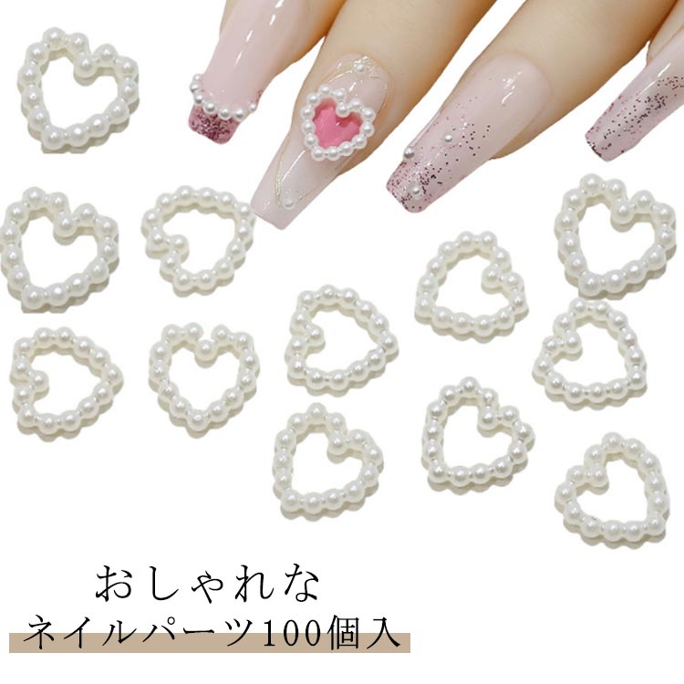 ネイルパーツ 100個入 パール くり抜きハートストーン 3D ハート パステルカラー オープンハート ブライダルネイル 大きい 大きめ ジェルネイル 結婚式ネイル