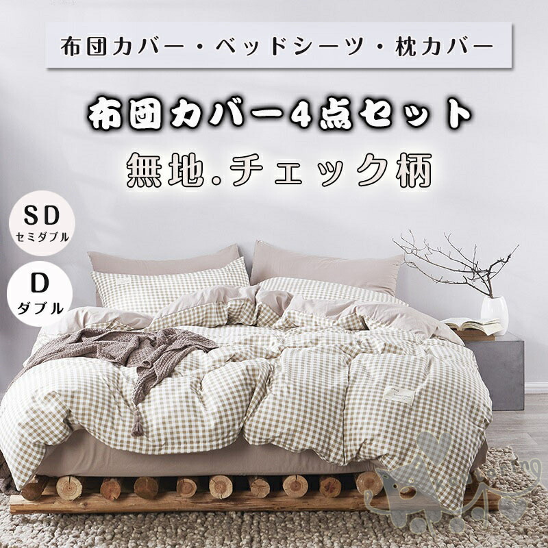 布団カバー セット 4点セットチェック柄 シングル 敷布団カバー クイーン ベッドカバー 寝具セット 枕カバー おしゃれ