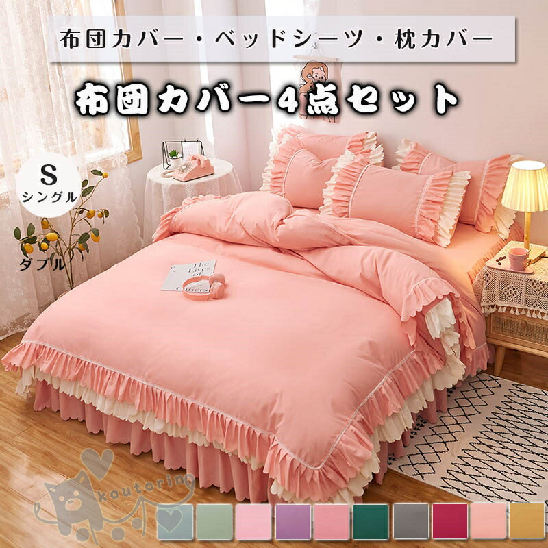 布団カバー 3/4点セット シングル フリル付き ベッドシーツ 枕カバー 寝具カバーセット フリル 四季通用 引越し祝い 送料無料