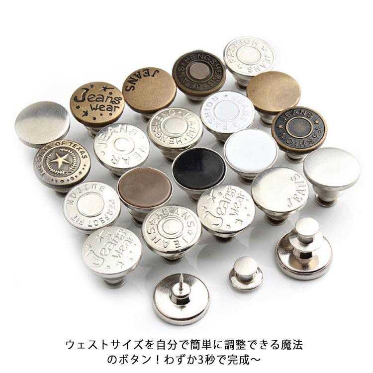 ズボンはもちろんバッグや小物のポイントにもぴったり 6個セット ウエスト調整 ボタン ウエスト 調整 ズボン パンツ スカート サイズ調整 サイズ直し お直し 縫いなし 工具不要 交換簡単 ジーンズ