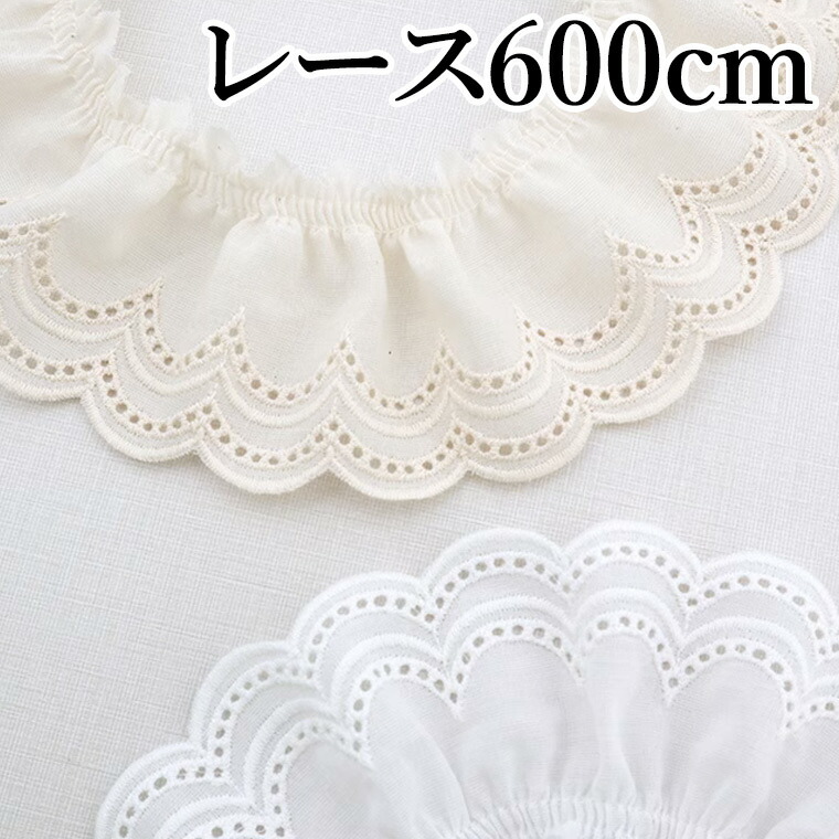 ハンドメイドやリメイクに スカラップレース 丸レース フリル ハギレ 600 6幅 小花 花柄 薄地生地 パンチ レース生地 刺繍 生地 布 綿レース コットン 裁縫 手作り 綿フリル